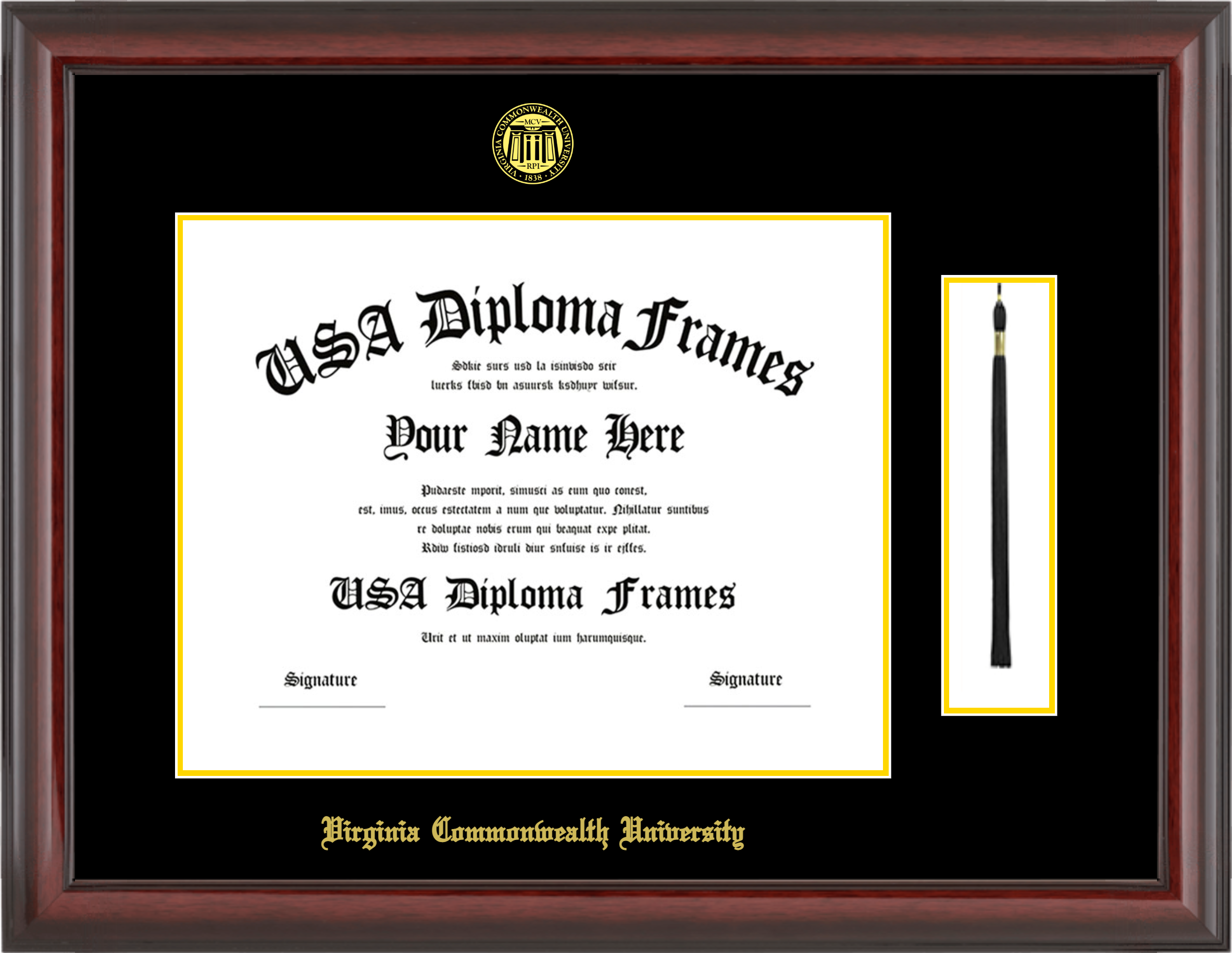 Virginia Commonwealth University Diploma Frame with Tassel – VCU – Cherry Mahogany Glossy – Black and Yellow Gold Mat