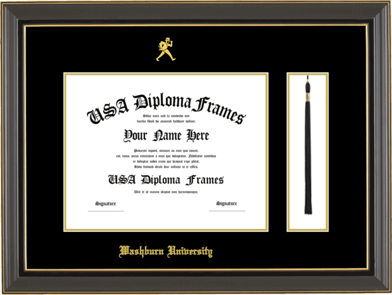 Washburn University Diploma Frame with Tassel – Black Gold Trim Glossy – Black and Gold Mat