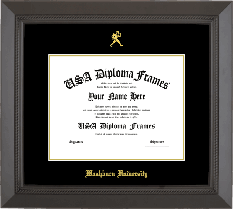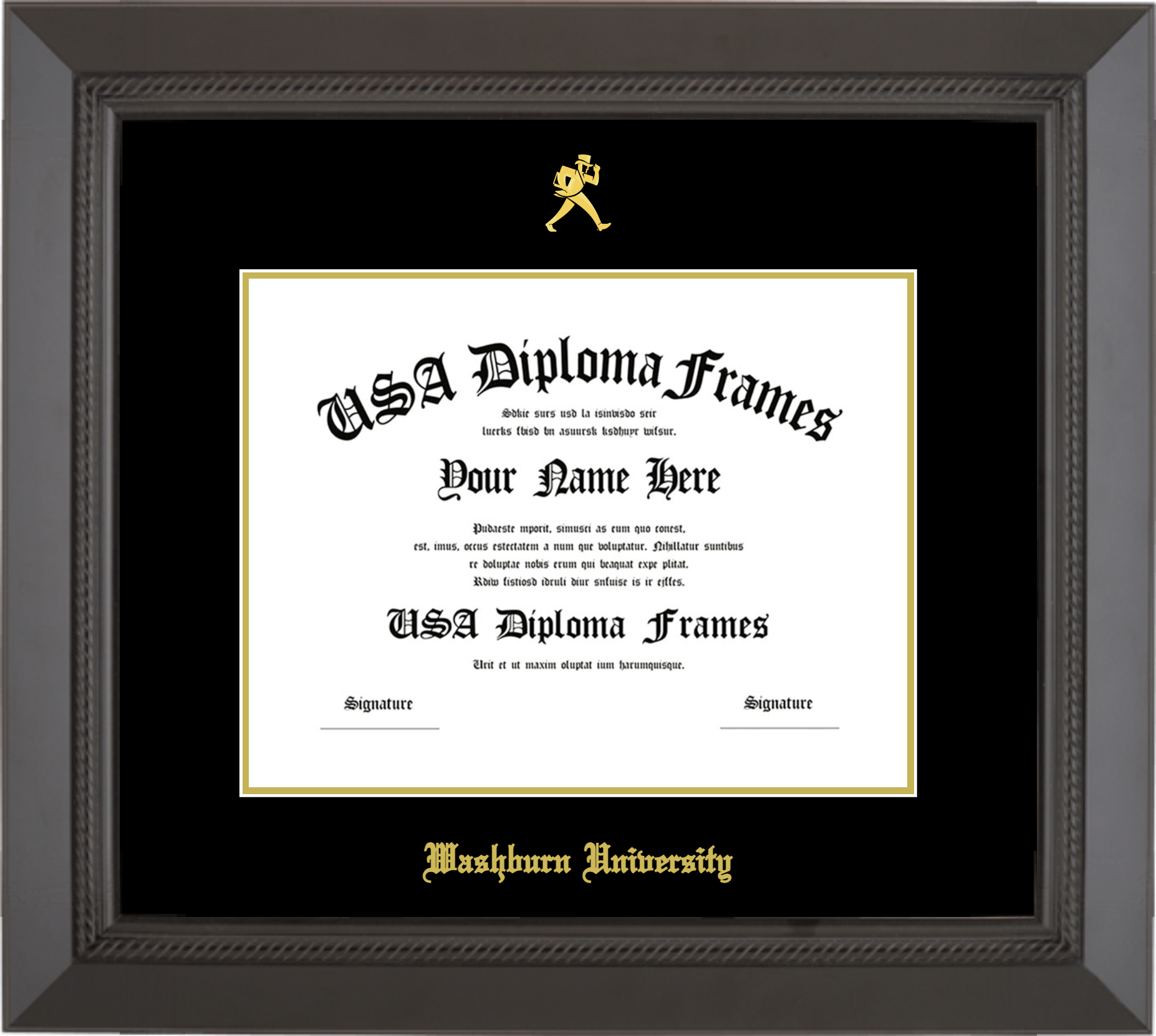 Washburn University Diploma Frame – Black Rope – Black and Gold Mat