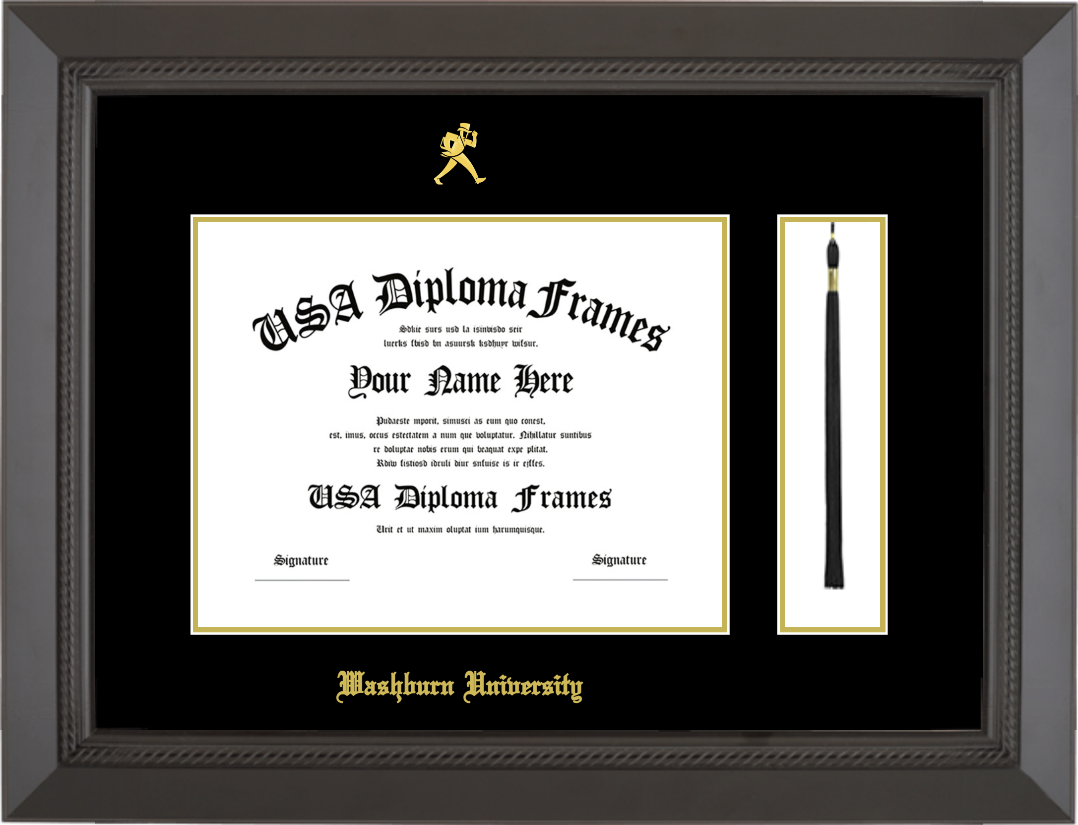 Washburn University Diploma Frame with Tassel – Black Rope – Black and Gold Mat