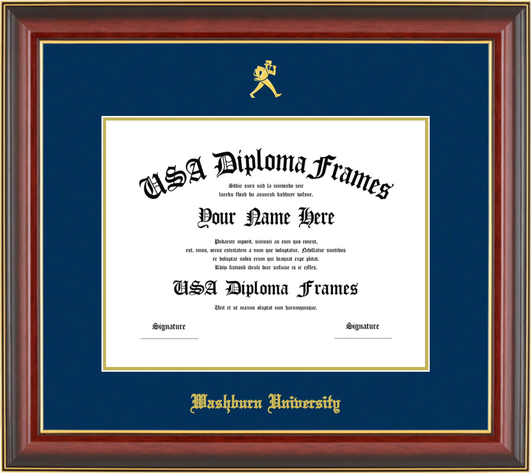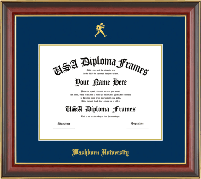 Washburn University Diploma Frame – Cherry Mahogany Gold Trim Glossy – Navy and Gold Mat