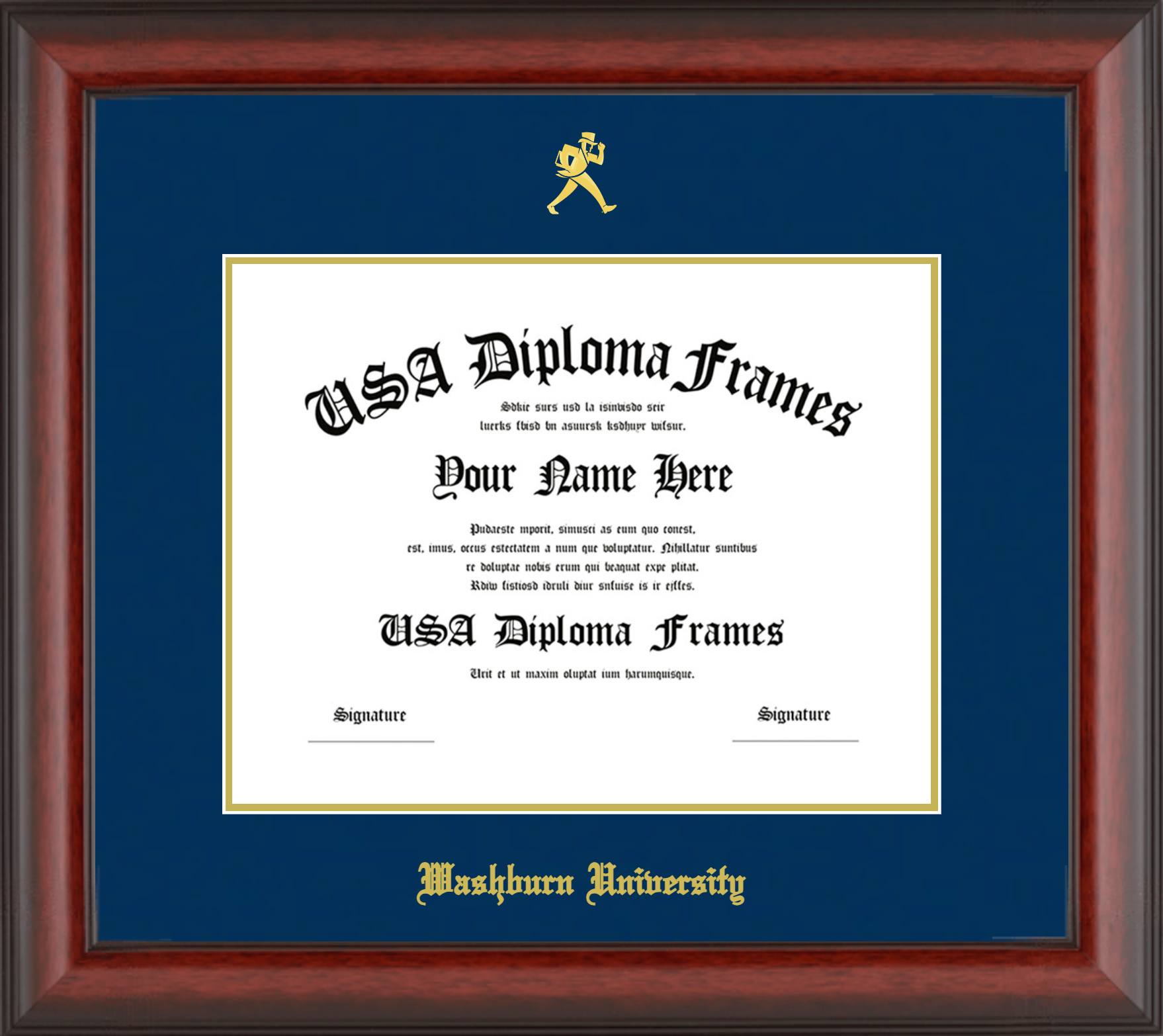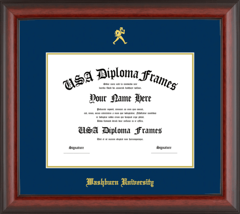 Washburn University Diploma Frame – Cherry Mahogany Matte – Navy and Gold Mat