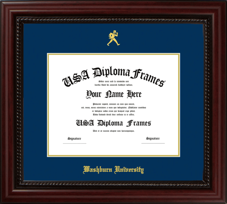 Washburn University Diploma Frame – Executive Cherry Rope – Navy and Gold Mat