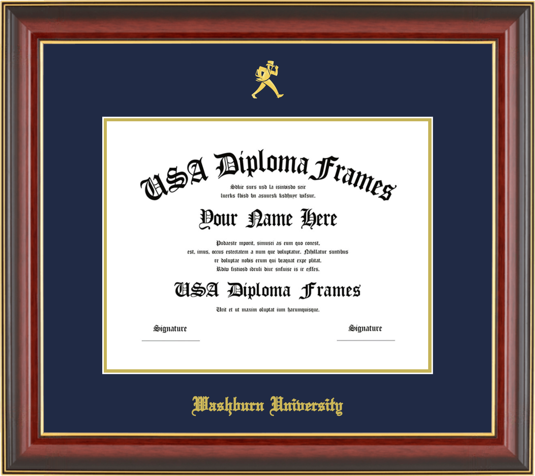 Washburn University – Single Horizontal Document ( Diploma ) – Cherry Mahogany Gold Trim Glossy – Navy Mat – Gold Accent Mat – With Seal(University Seal Gold) – With Gold Embossing (Washburn University)