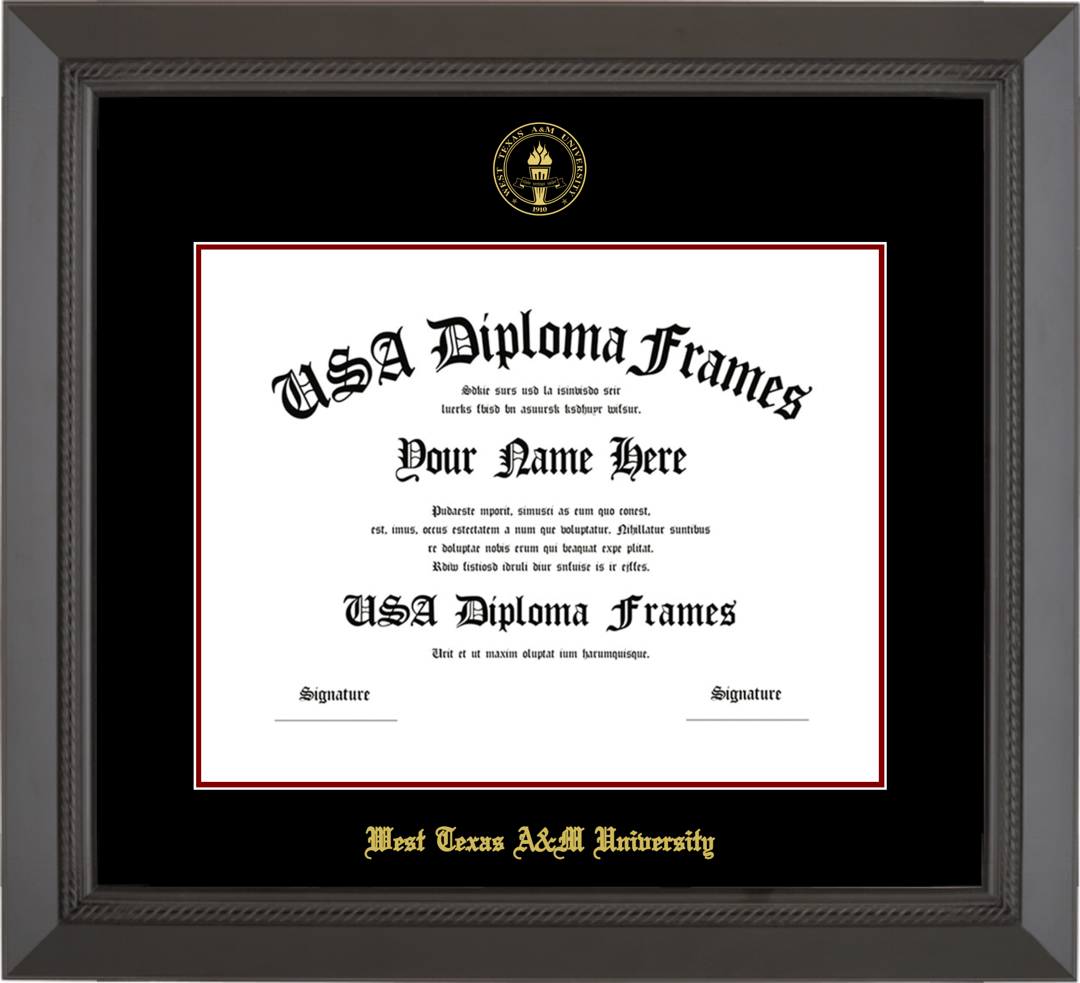 West Texas A&M University Diploma Frame – Black Rope – Black and Maroon Mat