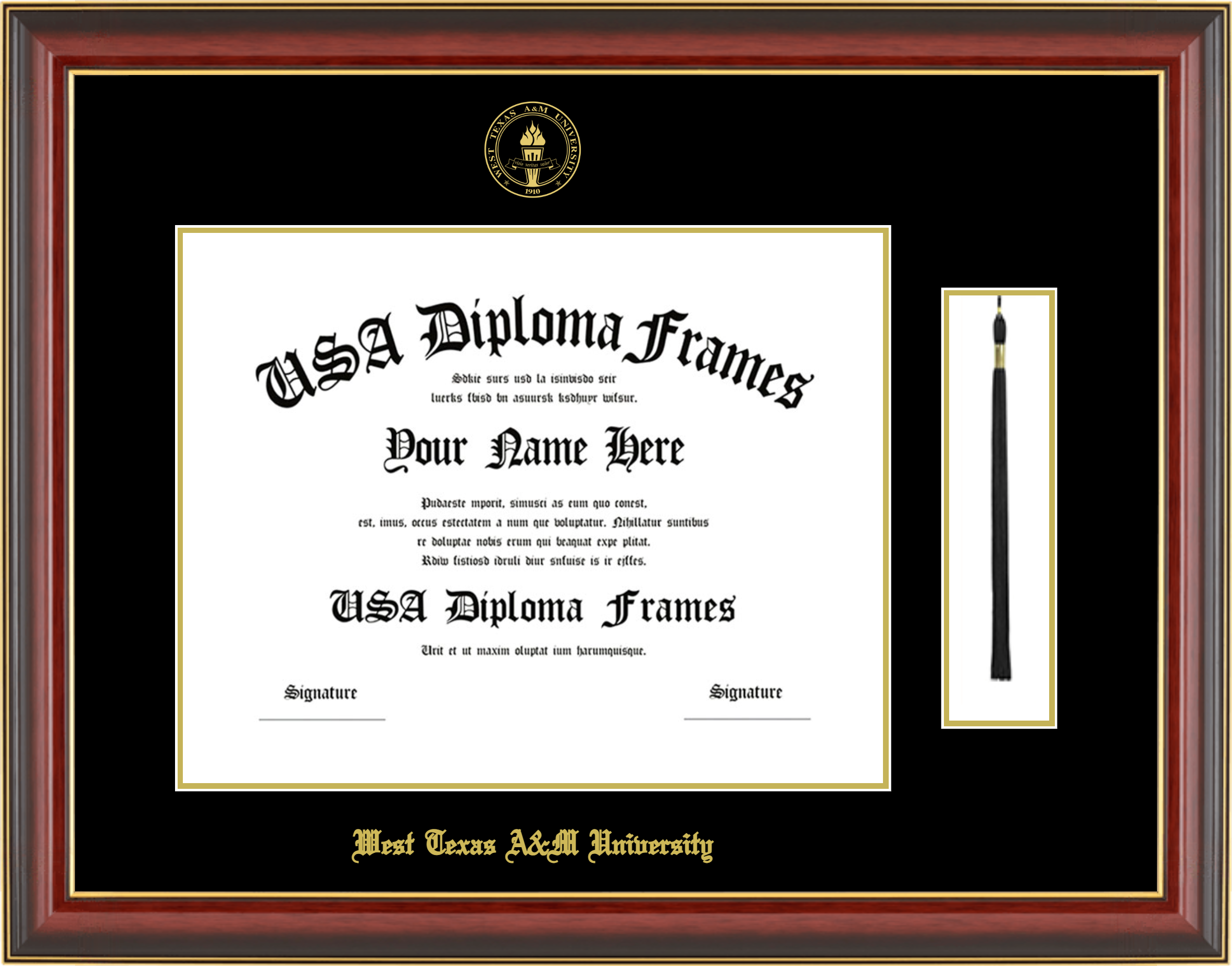 West Texas A&M University Diploma Frame with Tassel – Cherry Mahogany Gold Trim Glossy – Black and Gold Mat