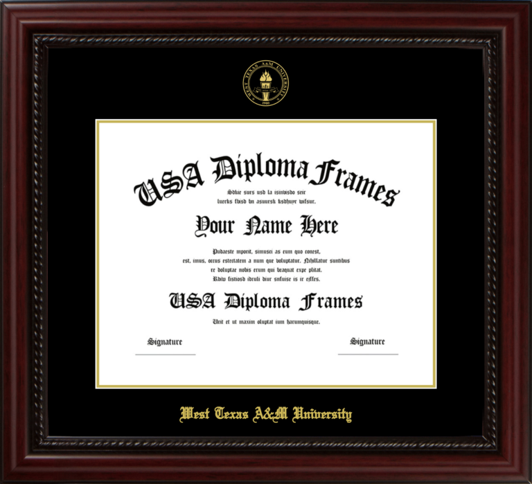 West Texas A&M University Diploma Frame – Executive Cherry Rope – Black and Gold Mat
