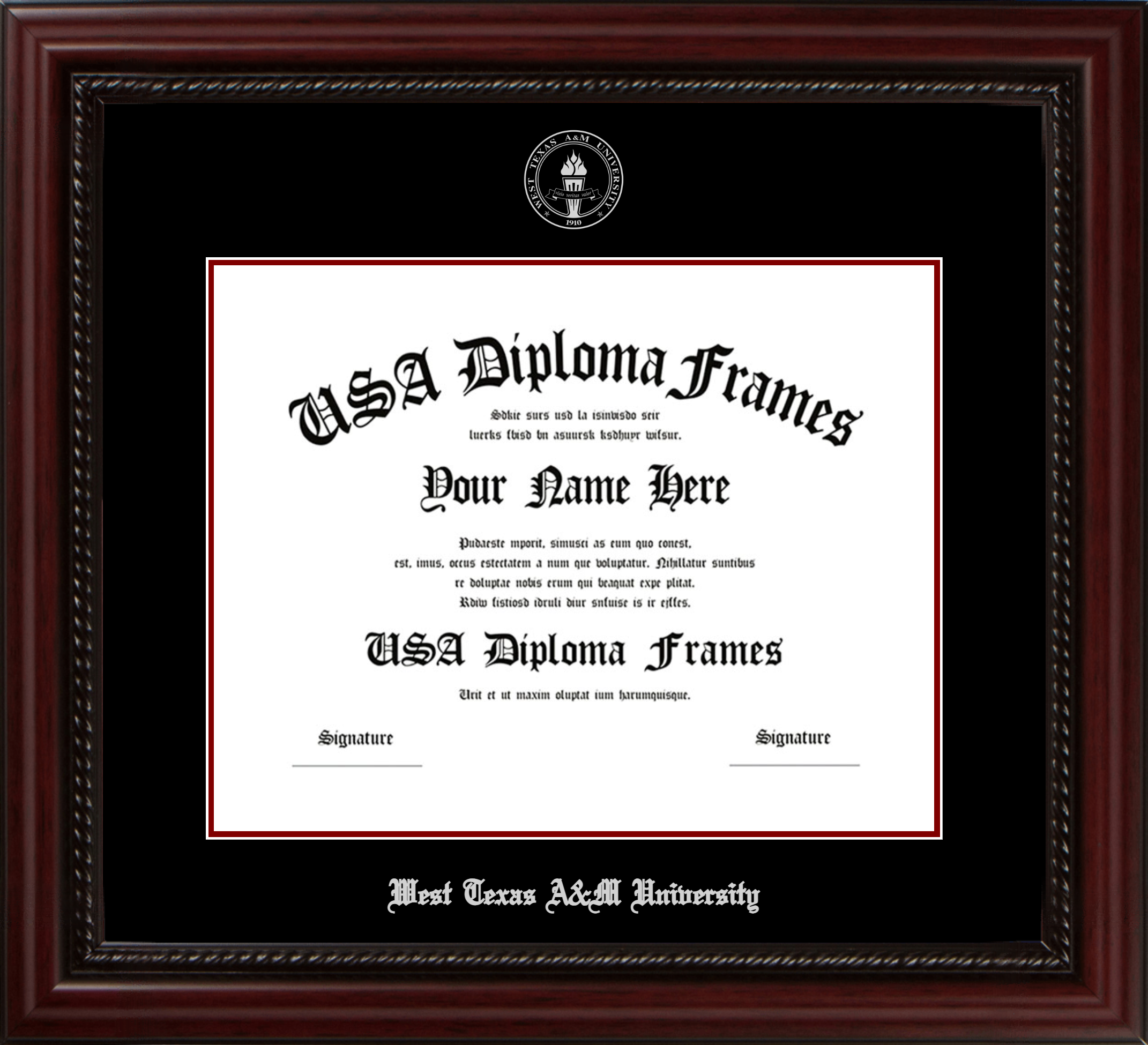 West Texas A&M University Diploma Frame – Executive Cherry Rope – Black and Maroon Mat – Silver Seal