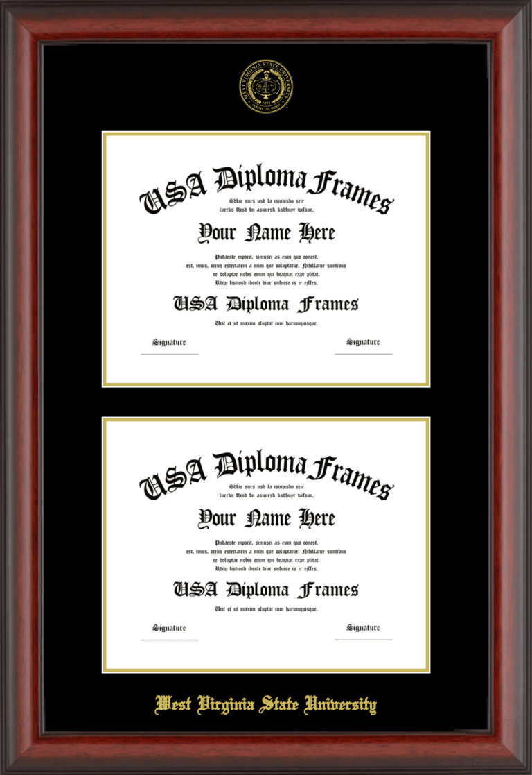 West Virginia State University Double Diploma Frame – Double Document – Cherry Mahogany Matte – Black and Gold Mat