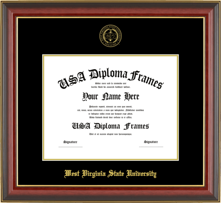 Want to explore more styles? Browse our full range of diploma frame layouts, or visit the West Virginia State University to view options available for your school. Looking for a fully personalized design? Try our custom Frame Builder and create a frame that’s uniquely yours.