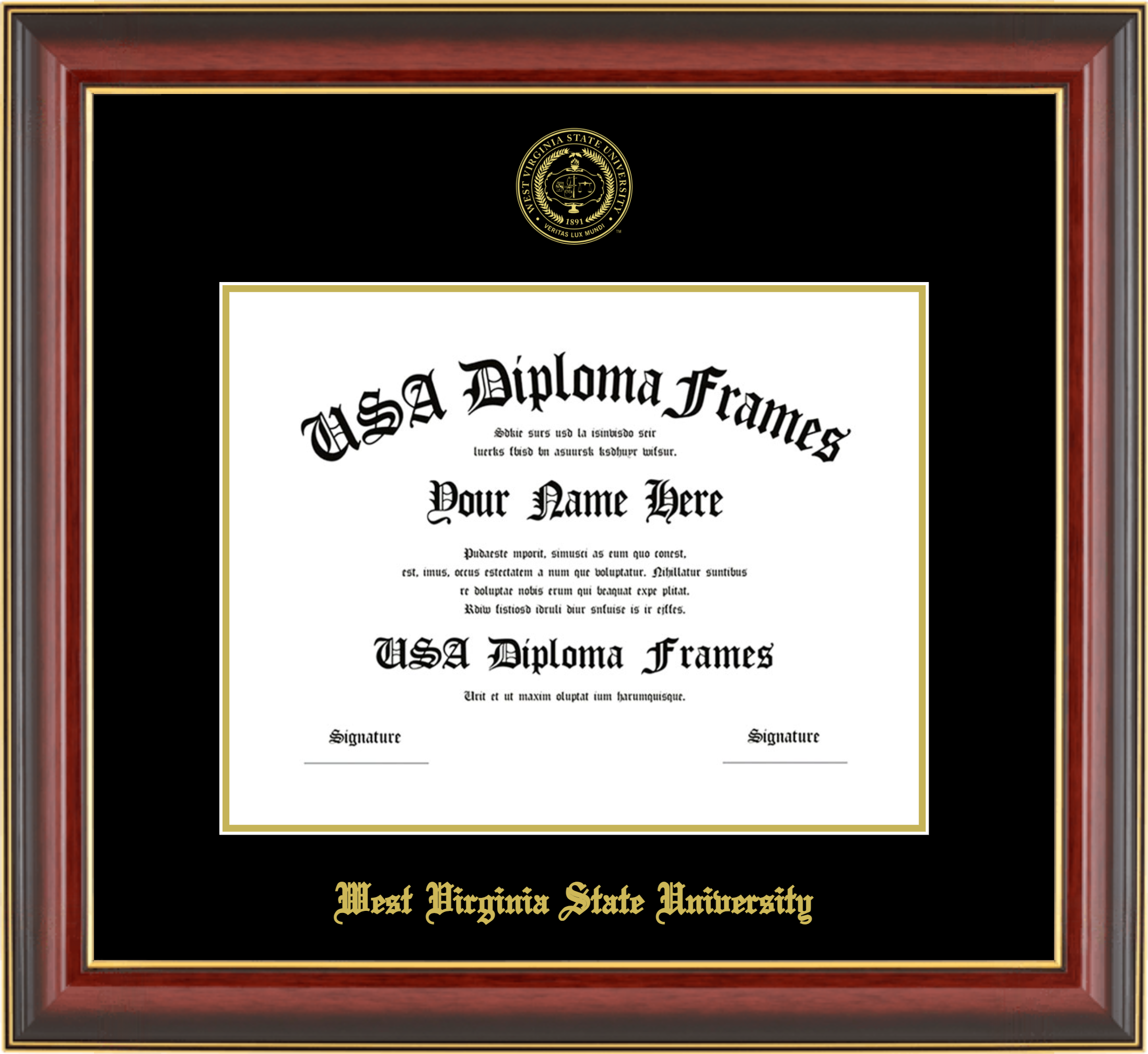 West Virginia State University Diploma Frame – Bachelors 8.5×11 – Cherry Mahogany Gold Trim Glossy – Black and Gold Mat