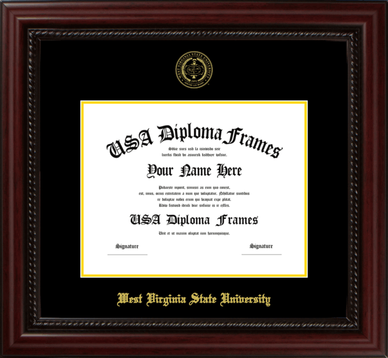 West Virginia State University Diploma Frame – Bachelors 8.5×11 – Executive Cherry Rope – Black and Yellow Gold Mat