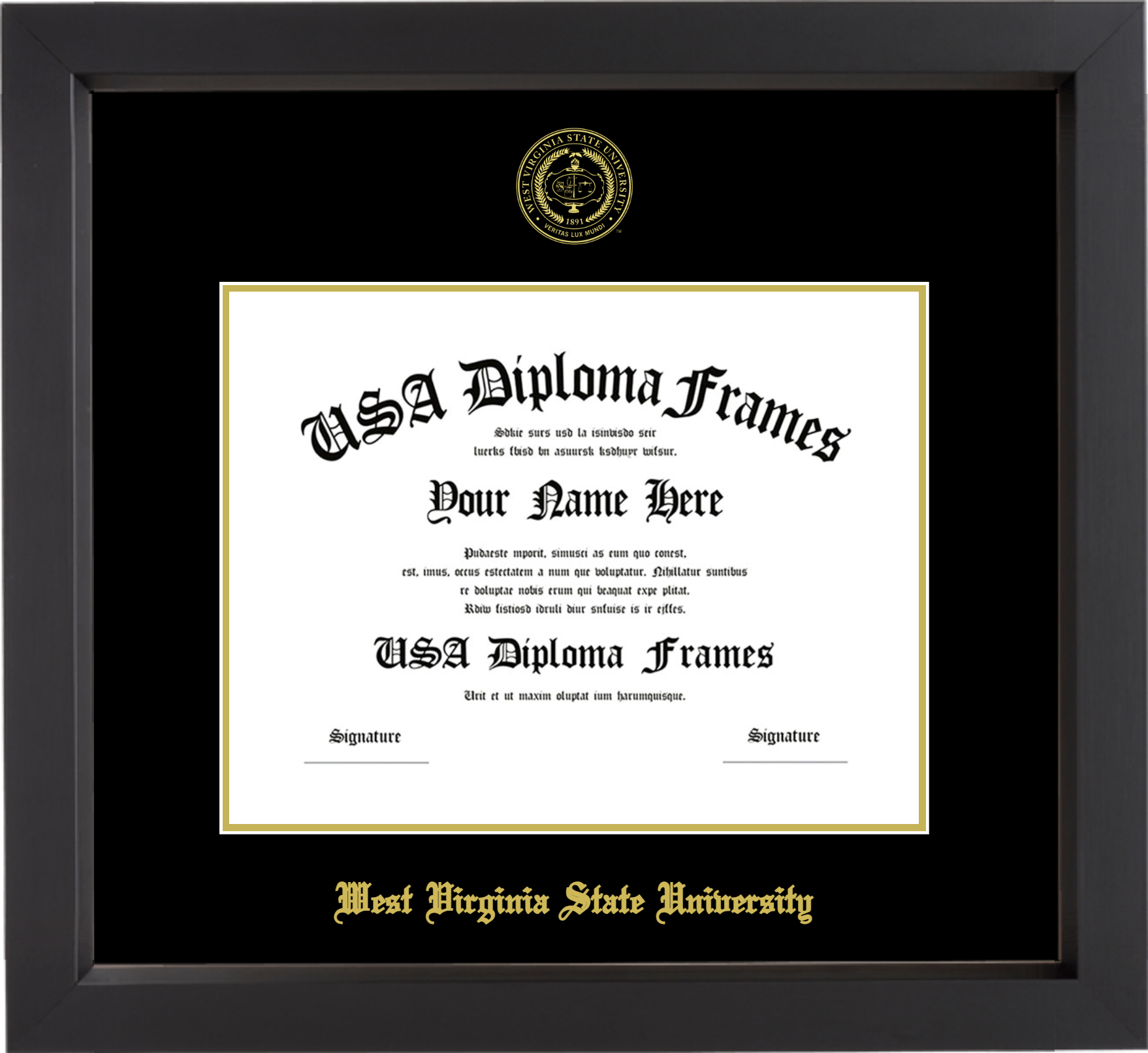 West Virginia State University Diploma Frame – Black Matte – Black and Gold Mat
