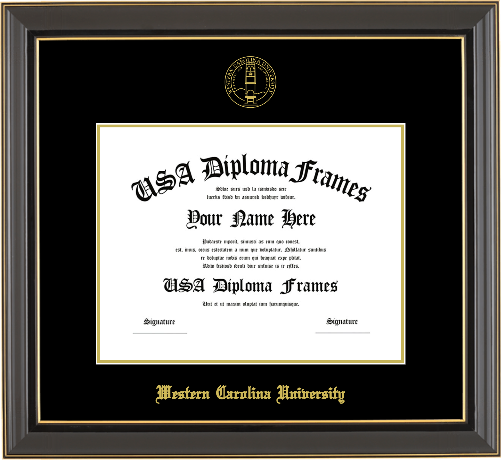 Western Carolina University Diploma Frame – Black Gold Trim Glossy – Black and Gold Mat