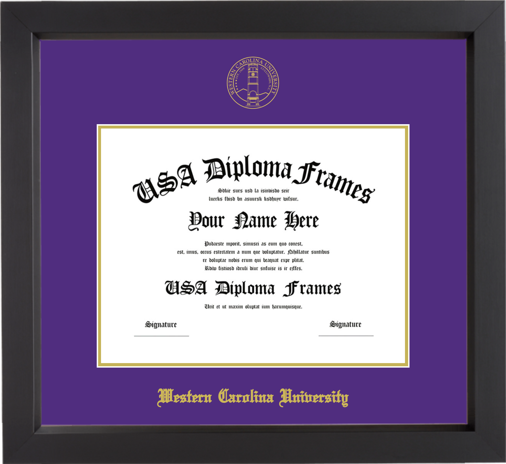Western Carolina University Diploma Frame – Black Matte – Purple and Gold Mat