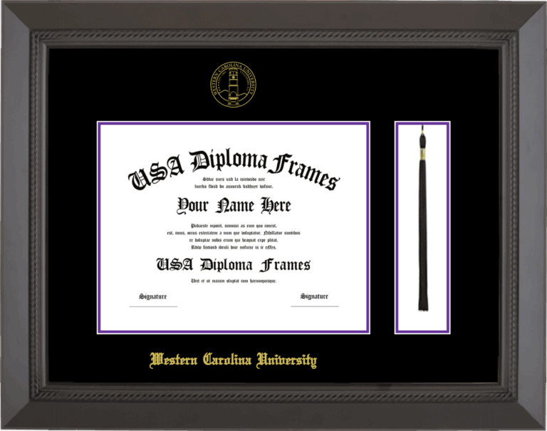 Western Carolina University Diploma Frame with Tassel – Bachelors 8.5×11 – Black Rope – Black and Purple Mat