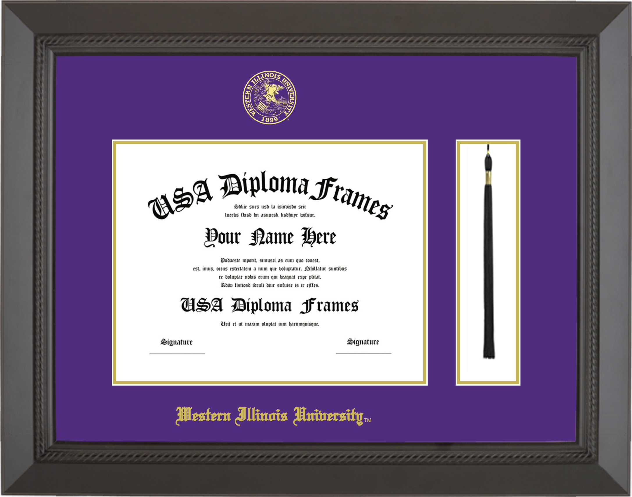 Western Illinois University – Single Horizontal Document ( Diploma ) – Black Rope – Purple Mat – Gold Accent Mat – With Tassel(Default) – With Seal(University Seal Gold) – With Gold Embossing (Western Illinois University)