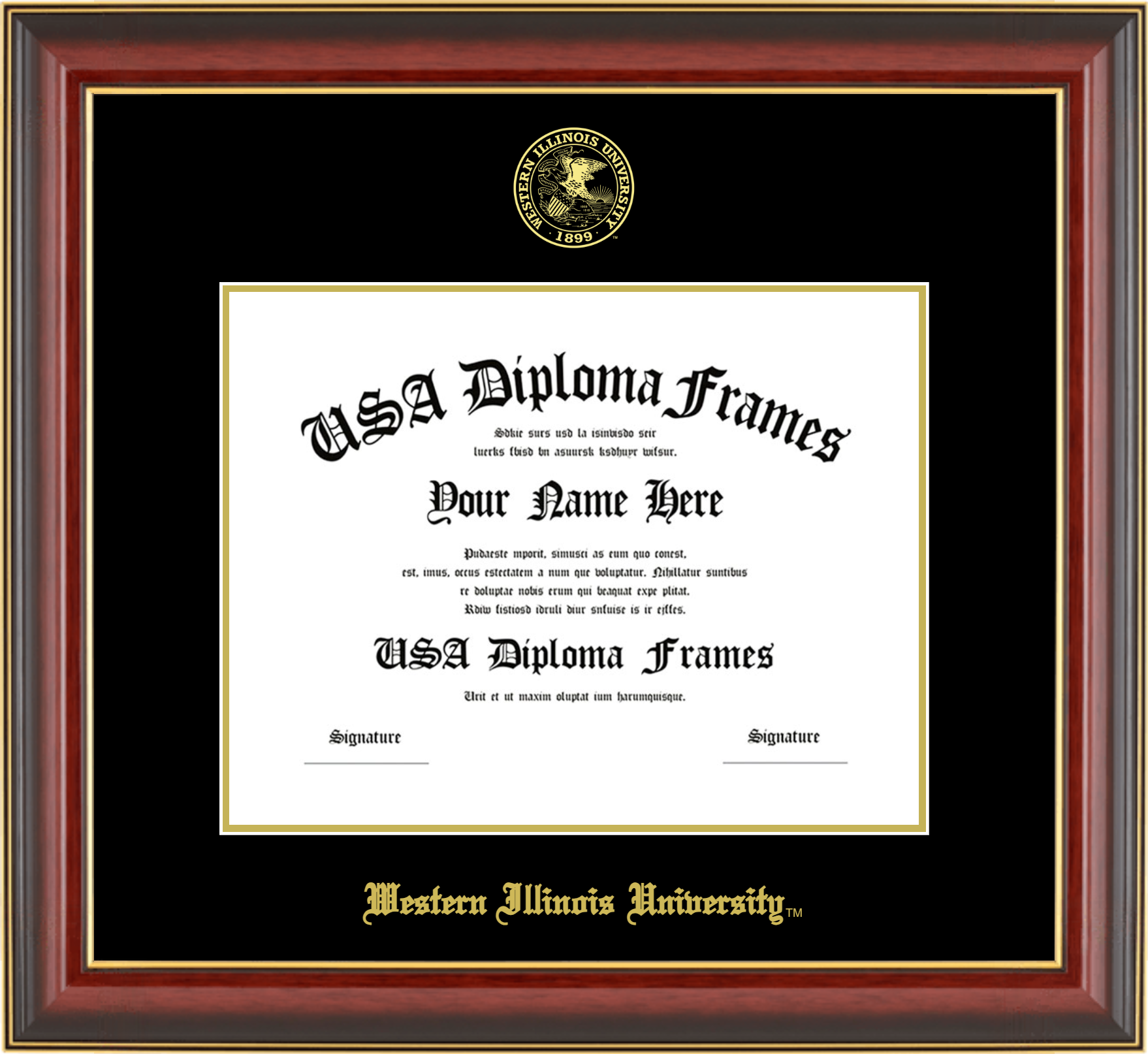 Western Illinois University – Single Horizontal Document ( Diploma ) – Cherry Mahogany Gold Trim Glossy – Black Mat – Gold Accent Mat – With Seal(University Seal Gold) – With Gold Embossing (Western Illinois University)