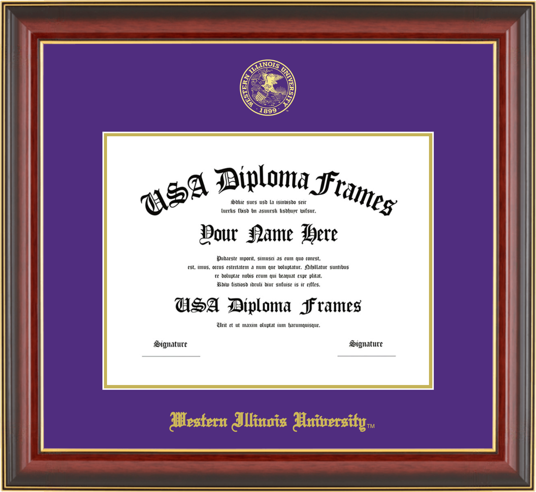 Western Illinois University – Single Horizontal Document ( Diploma ) – Cherry Mahogany Gold Trim Glossy – Purple Mat – Gold Accent Mat – With Seal(University Seal Gold) – With Gold Embossing (Western Illinois University)