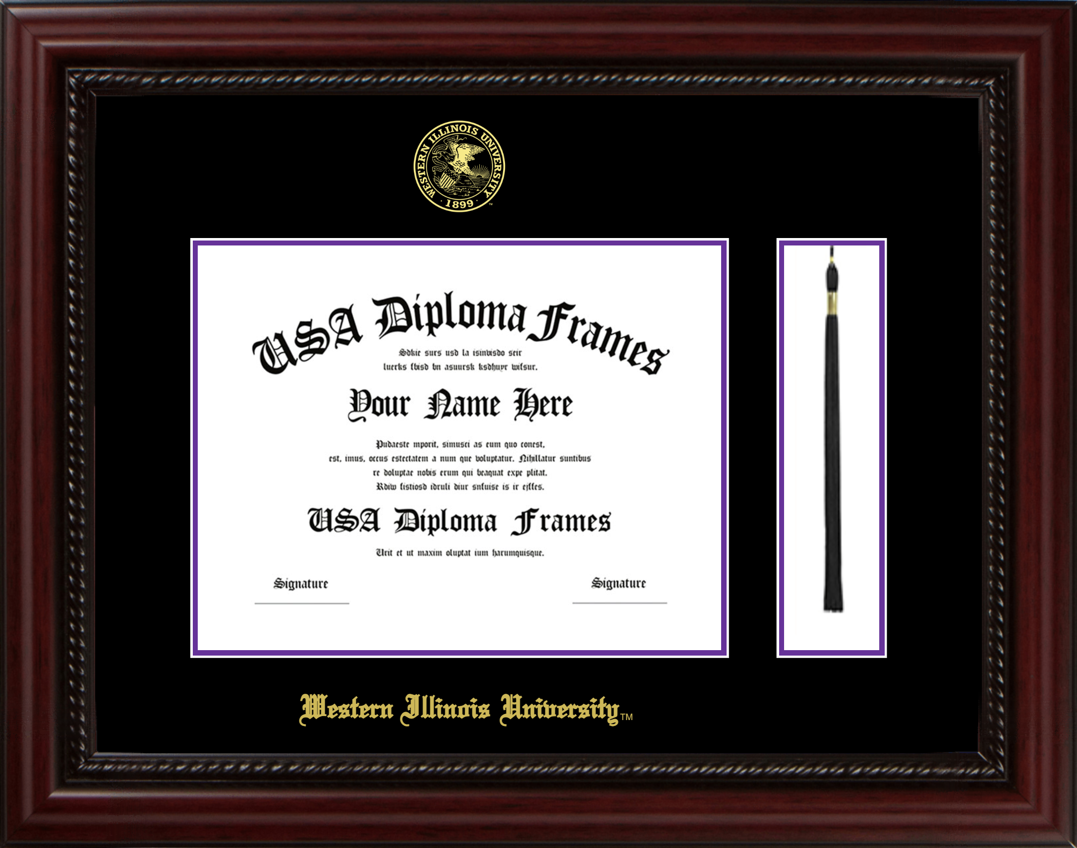 Western Illinois University – Single Horizontal Document ( Diploma ) – Executive Cherry Rope – Black Mat – Purple Accent Mat – With Tassel(Default) – With Seal(University Seal Gold) – With Gold Embossing (Western Illinois University)