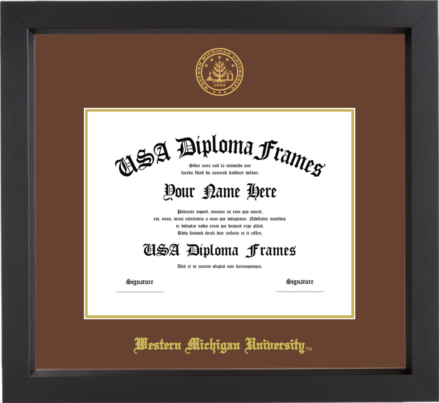 Western Michigan University – Single Horizontal Document ( Diploma ) – Black Matte – Brown Mat – Gold Accent Mat – With Seal(University Seal Gold) – With Gold Embossing (Western Michigan University)