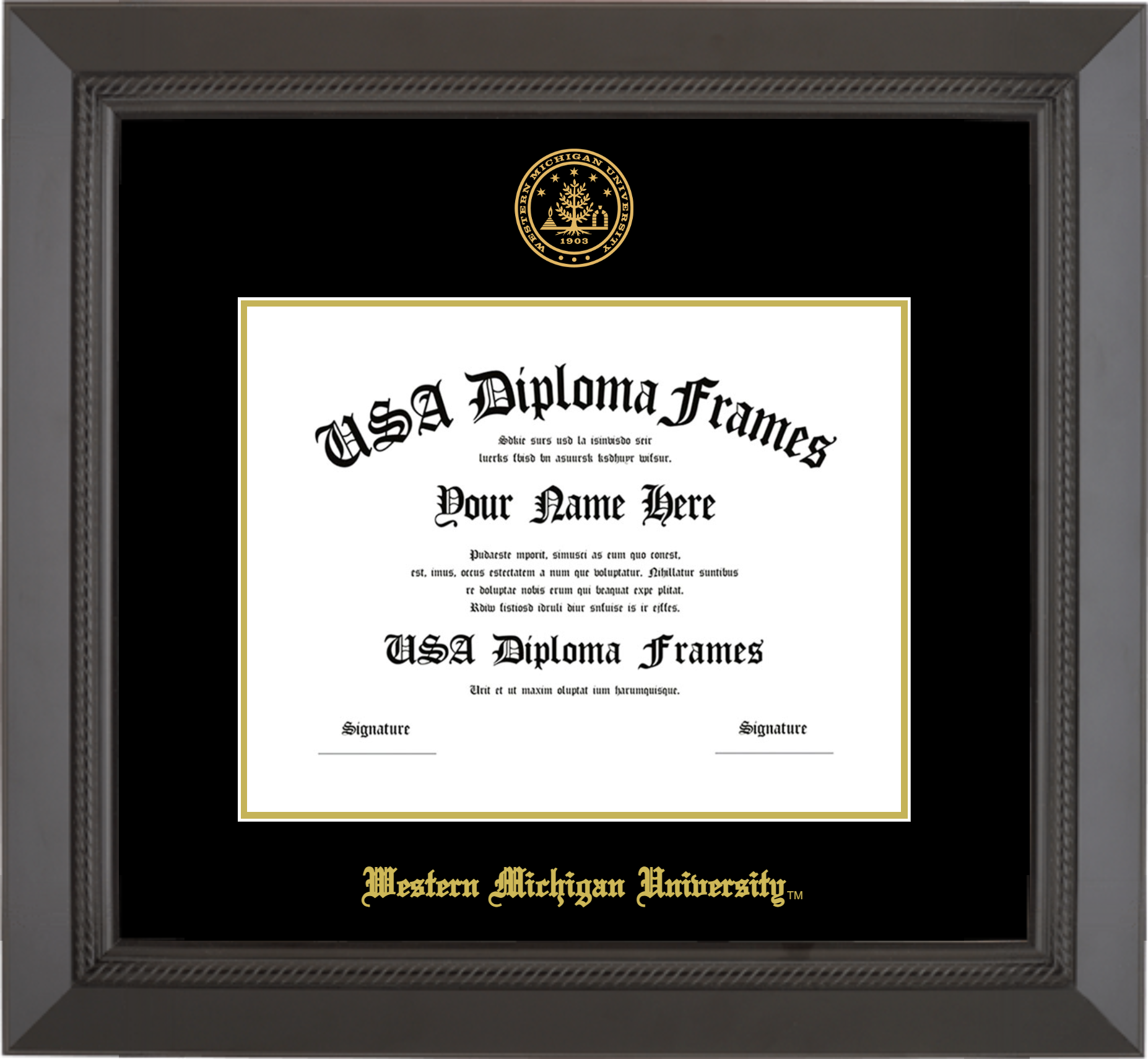 Western Michigan University Diploma Frame – Black Rope – Black and Gold Mat