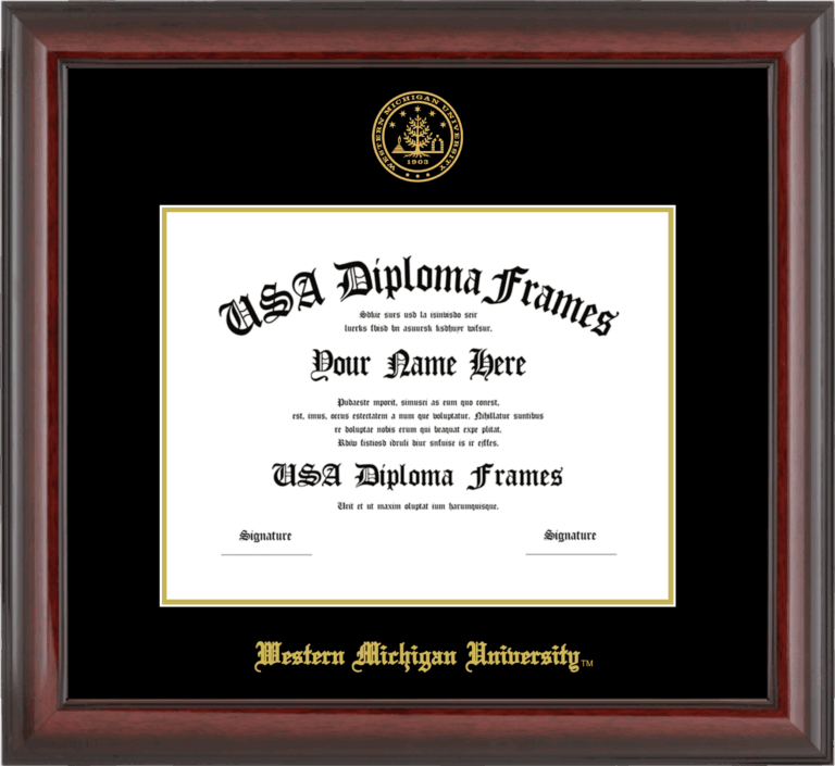 Want to explore more styles? Browse our full range of diploma frame layouts, or visit the Western Michigan University to view options available for your school. Looking for a fully personalized design? Try our custom Frame Builder and create a frame that’s uniquely yours.