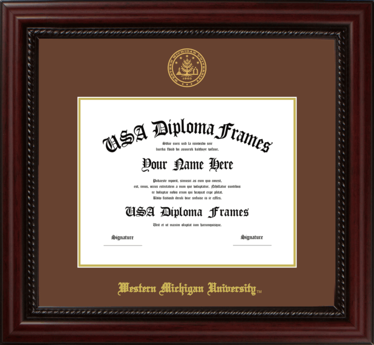 Western Michigan University Diploma Frame – Executive Cherry Rope – Brown and Gold Mat