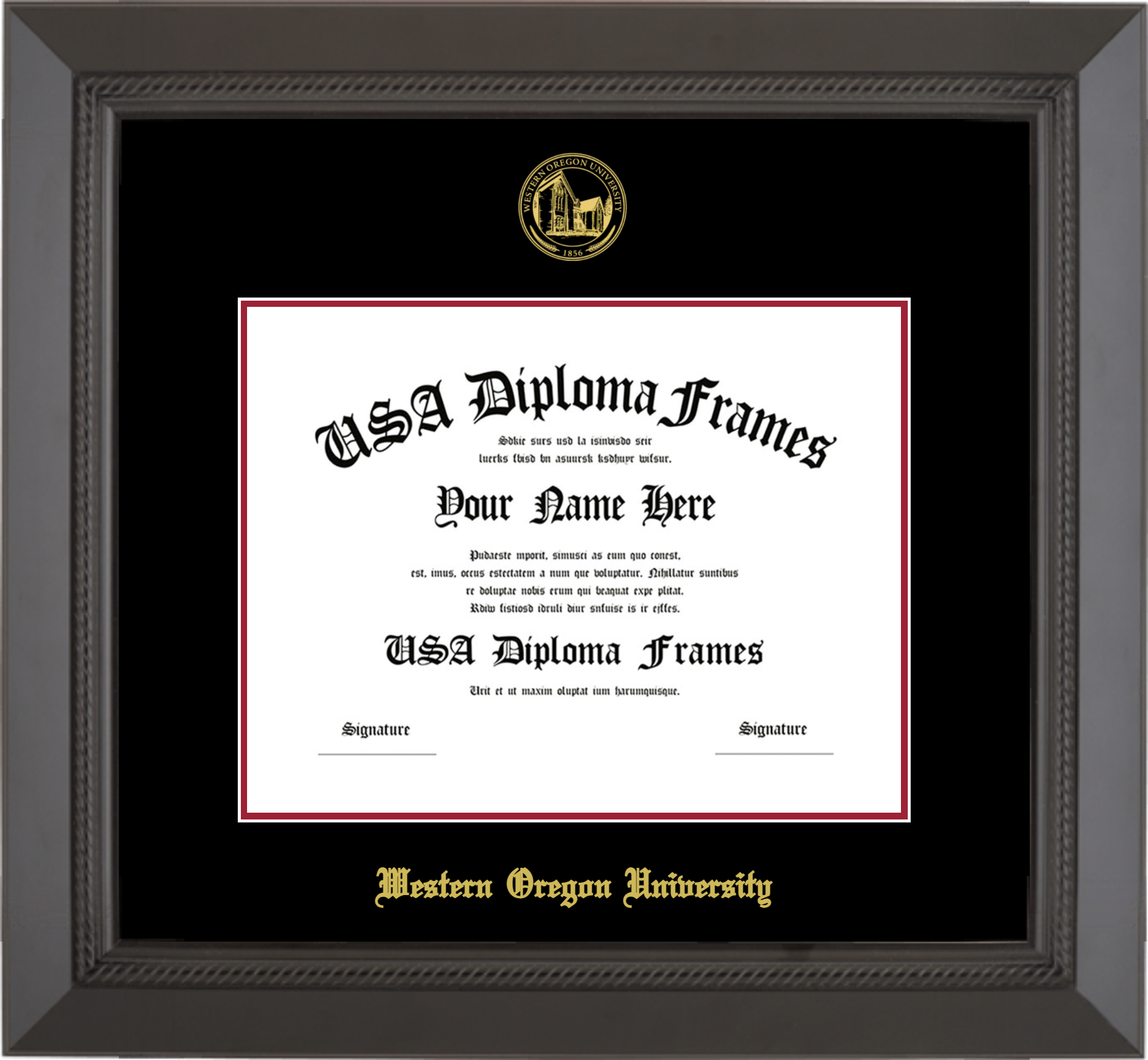Western Oregon University Diploma Frame – Black Rope – Black and Crimson Mat