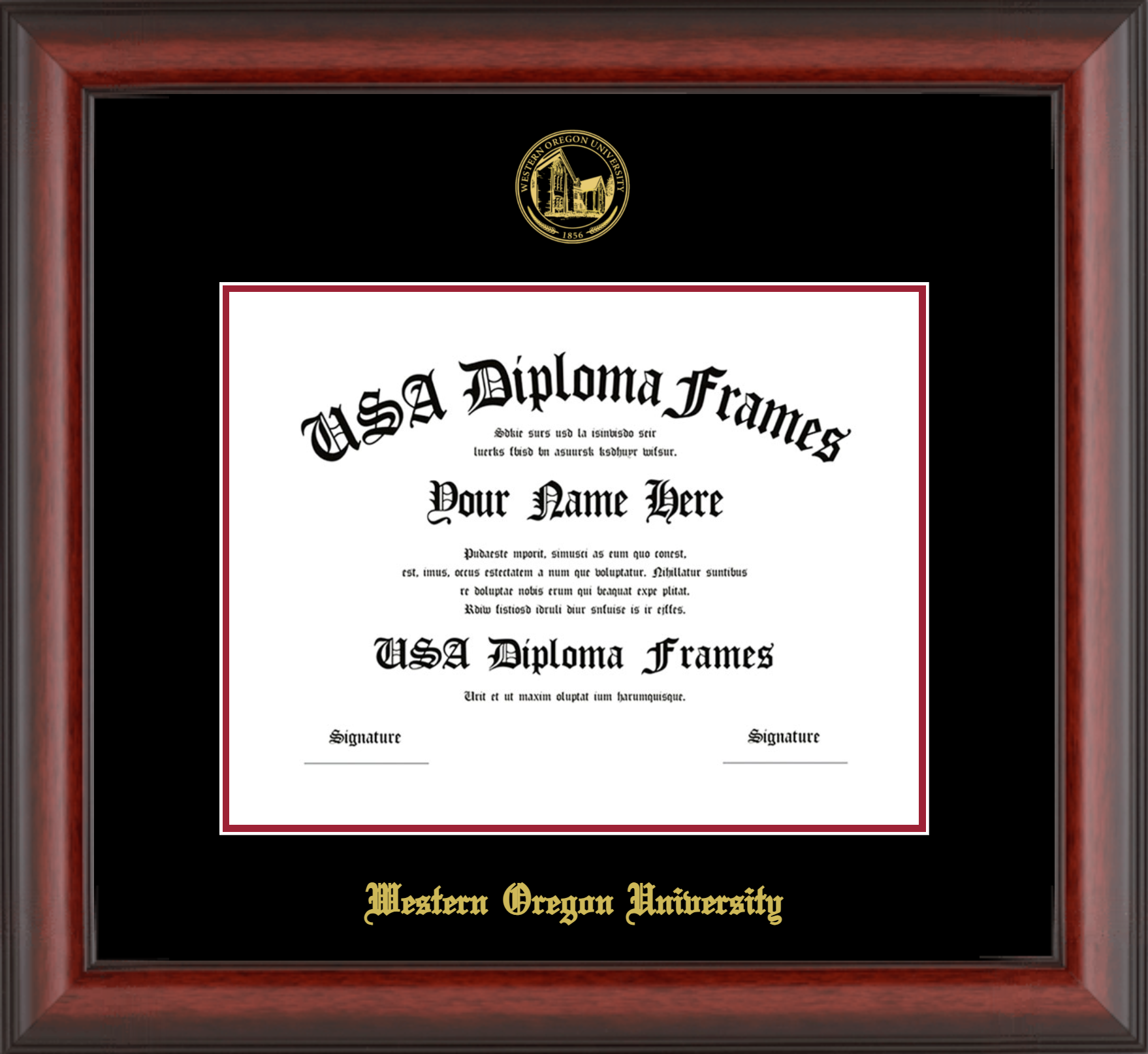 Western Oregon University Diploma Frame – Cherry Mahogany Matte – Black and Crimson Mat