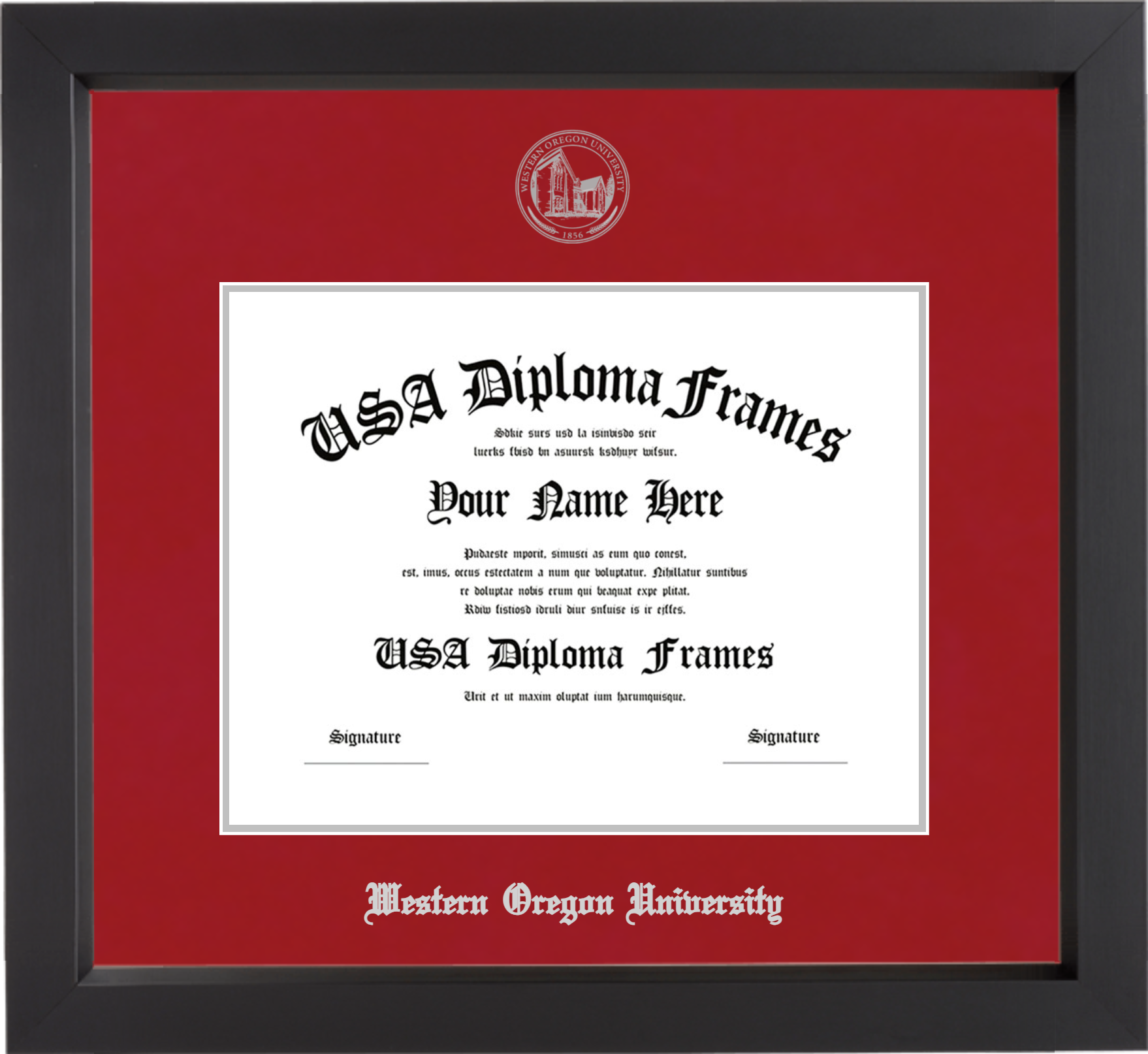Western Oregon University – Single Horizontal Document ( Diploma ) – Black Matte – Crimson Mat – Silver Accent Mat – With Seal(University Seal Silver) – With Silver Embossing (Western Oregon University)