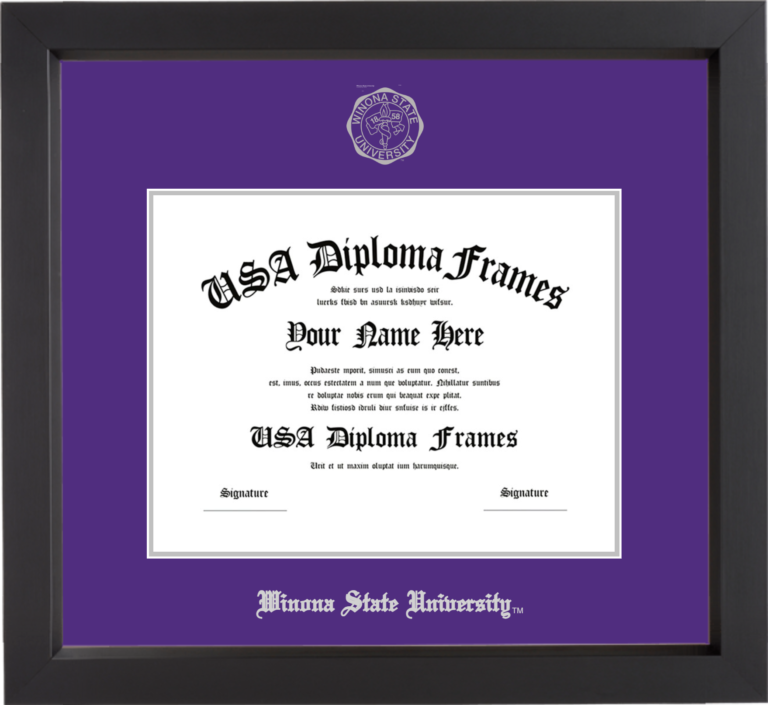 Want to explore more styles? Browse our full range of diploma frame layouts, or visit the Winona State University to view options available for your school. Looking for a fully personalized design? Try our custom Frame Builder and create a frame that’s uniquely yours.
