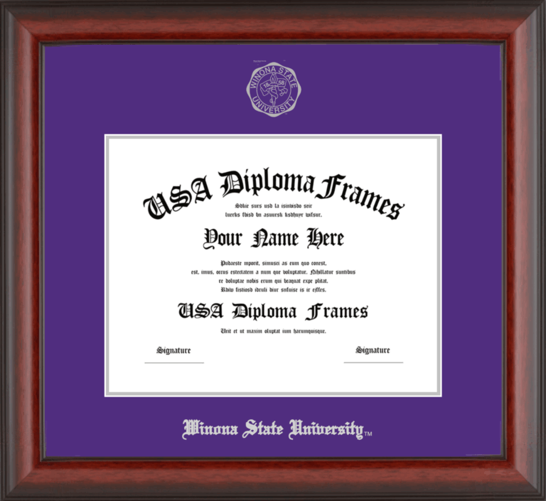 Want to explore more styles? Browse our full range of diploma frame layouts, or visit the Winona State University to view options available for your school. Looking for a fully personalized design? Try our custom Frame Builder and create a frame that’s uniquely yours.
