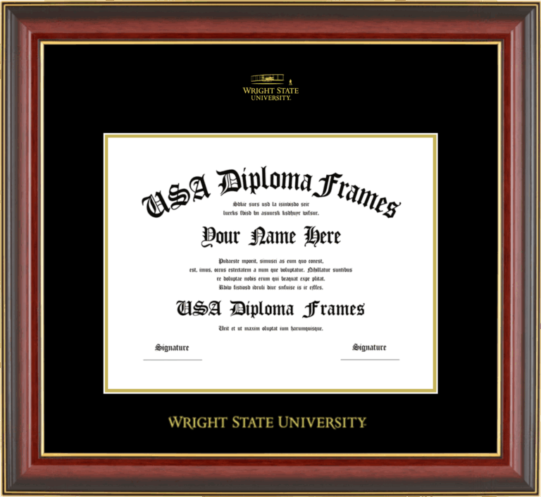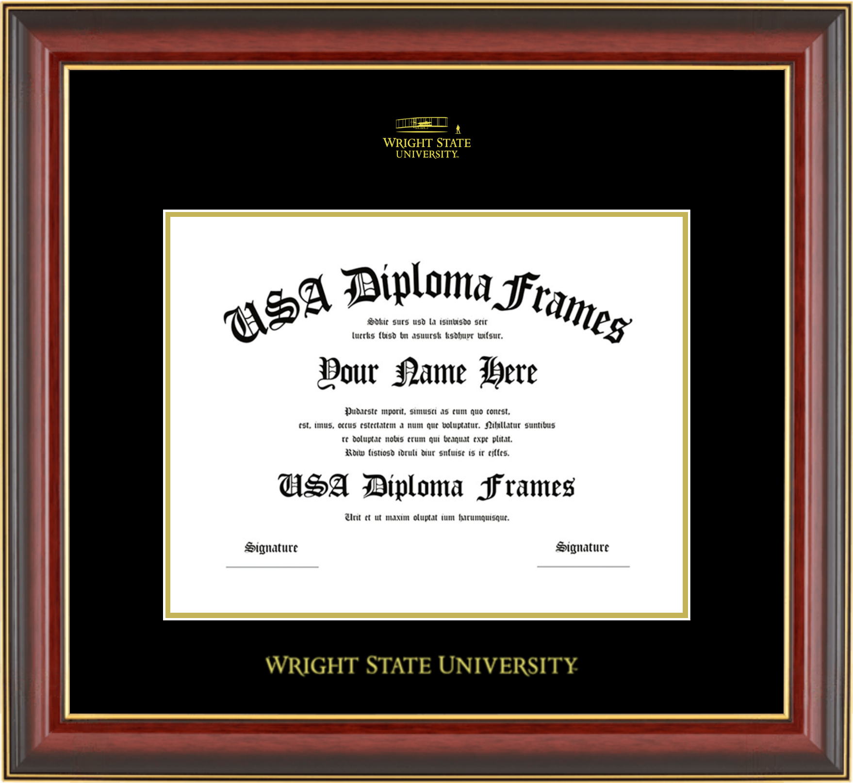 Wright State University Diploma Frame – Cherry Mahogany Gold Trim Glossy – Black and Gold Mat