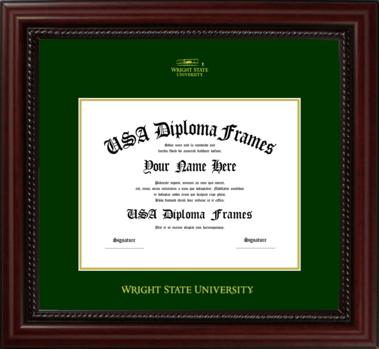Want to explore more styles? Browse our full range of diploma frame layouts, or visit the Wright State University to view options available for your school. Looking for a fully personalized design? Try our custom Frame Builder and create a frame that’s uniquely yours.