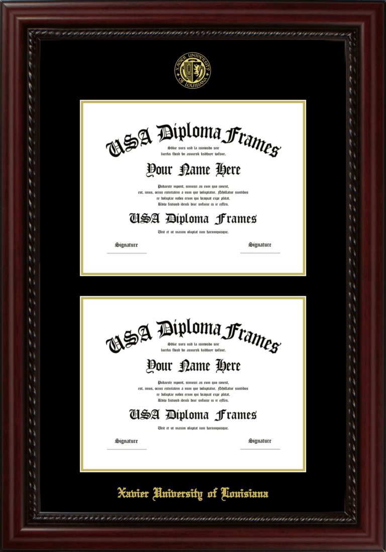 Xavier University of Louisiana Double Diploma Frame – Double Document – Executive Cherry Rope – Black and Gold Mat