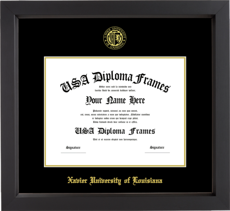 Xavier University of Louisiana Diploma Frame – Black Matte – Black and Gold Mat