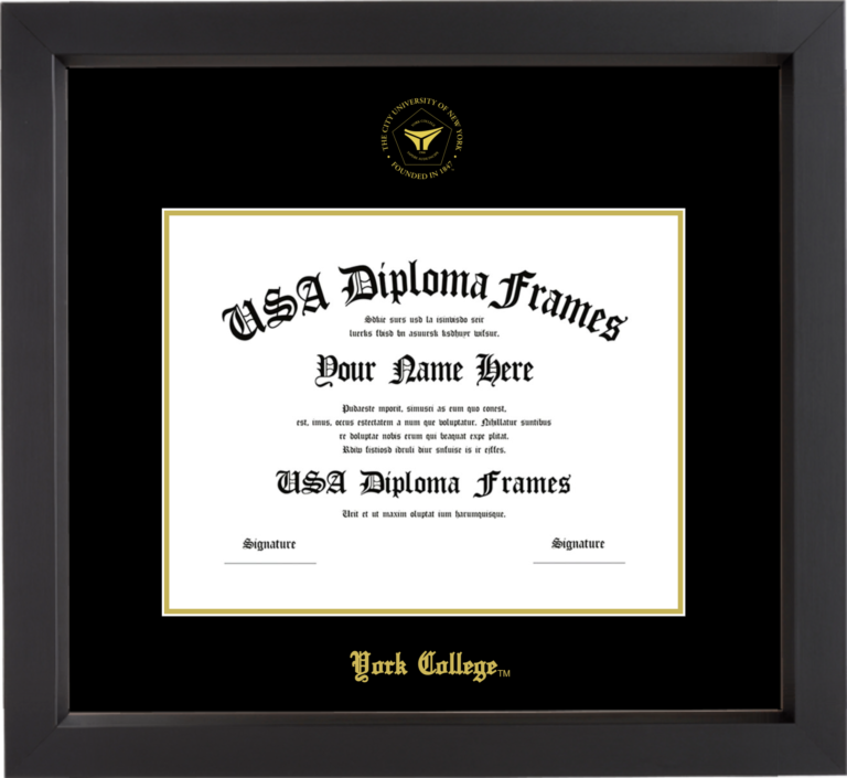 York College Diploma Frame – Black Matte – Black and Gold Mat