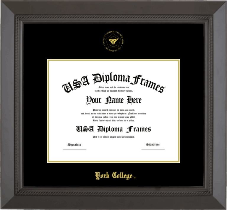 Want to explore more styles? Browse our full range of diploma frame layouts, or visit the York College to view options available for your school. Looking for a fully personalized design? Try our custom Frame Builder and create a frame that’s uniquely yours.