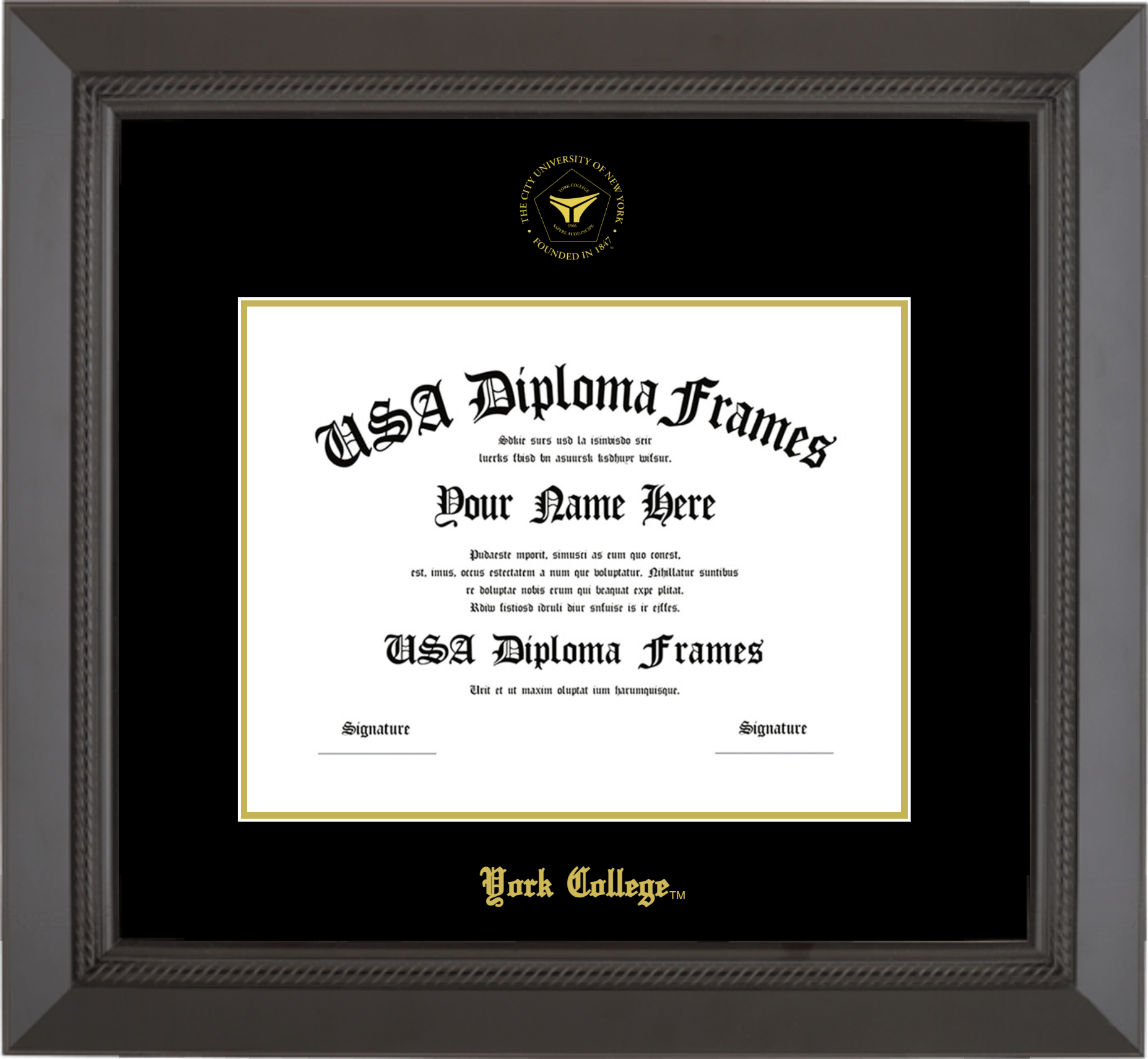 York College Diploma Frame – Black Rope – Black and Gold Mat