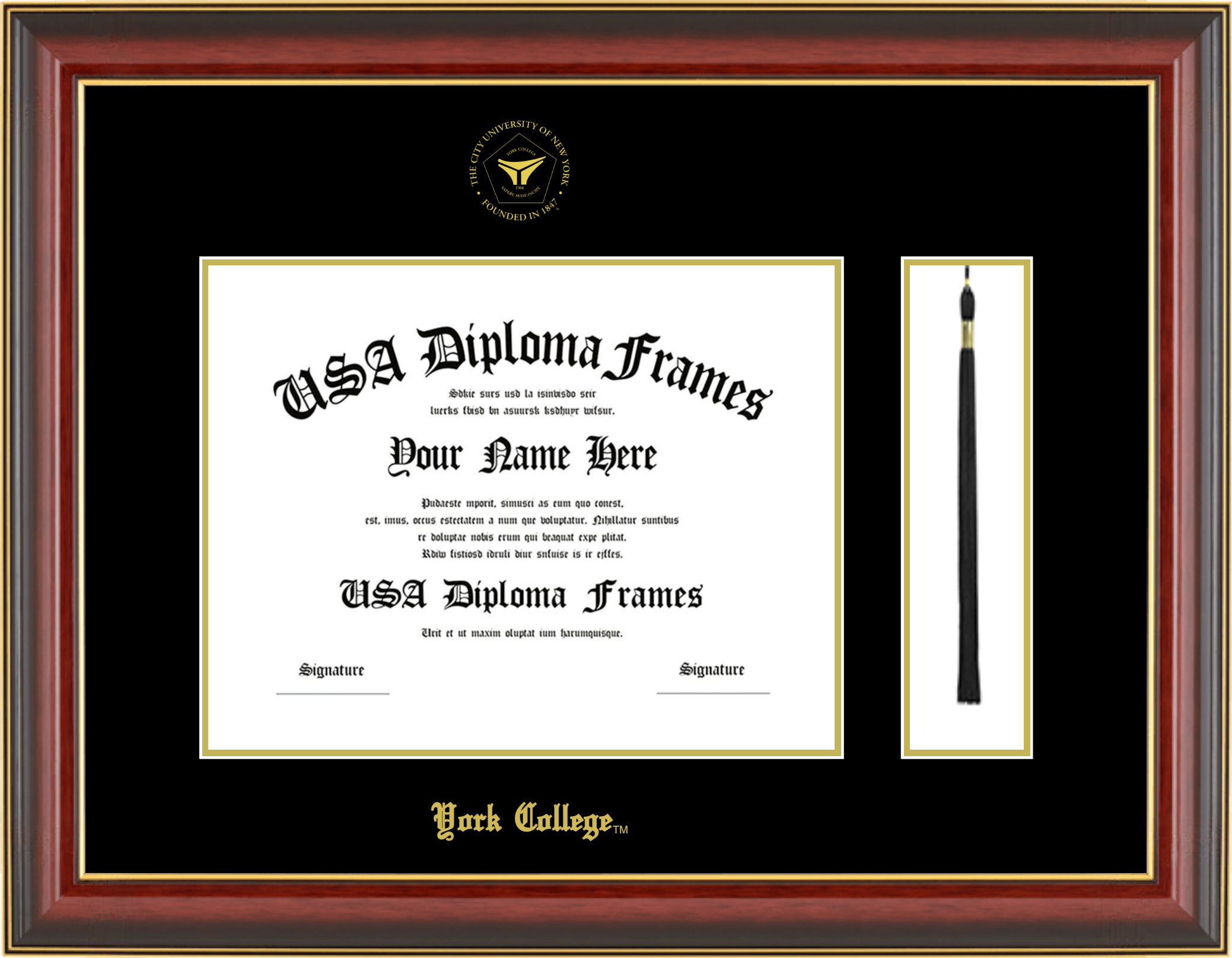 York College Diploma Frame with Tassel – Cherry Mahogany Gold Trim Glossy – Black and Gold Mat