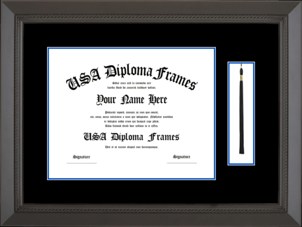 College diploma frames deserve a place on your wall! Custom build your university degree frame today. We offer a variety of college diploma frames ranging from simple to more decorative. Our cherry mahogany frames are a traditional choice sure to last a lifetime. For a more modern look, check out our black matte or white matte frame mouldings. If you really want to make a statement, the cherry rope and executive black mouldings really make a showing. Whatever you choose, We will build your diploma frame with care and customize your diploma frame the way you want it!