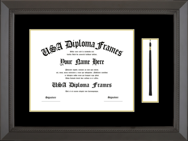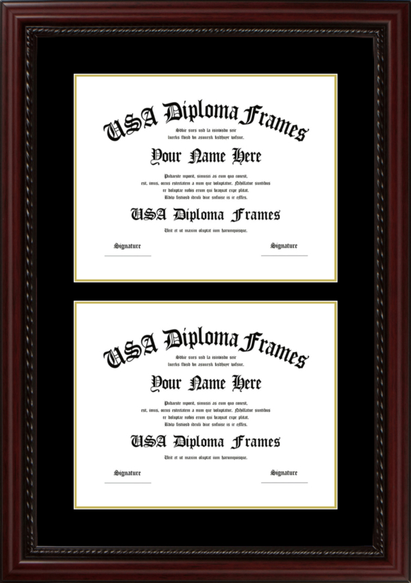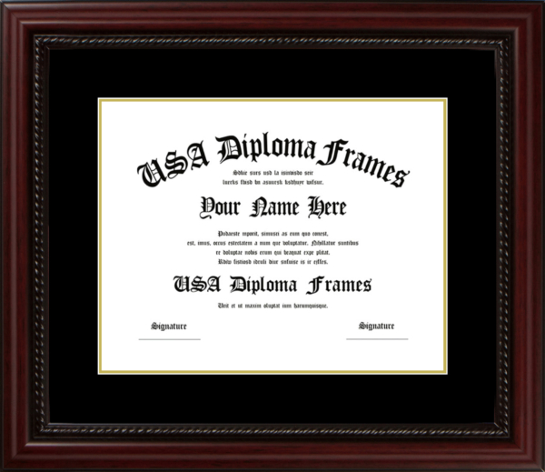 College diploma frames deserve a place on your wall! Custom build your university degree frame today. We offer a variety of college diploma frames ranging from simple to more decorative. Our cherry mahogany frames are a traditional choice sure to last a lifetime. For a more modern look, check out our black matte or white matte frame mouldings. If you really want to make a statement, the cherry rope and executive black mouldings really make a showing. Whatever you choose, We will build your diploma frame with care and customize your diploma frame the way you want it!