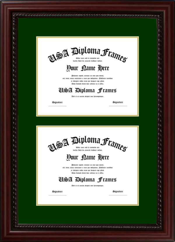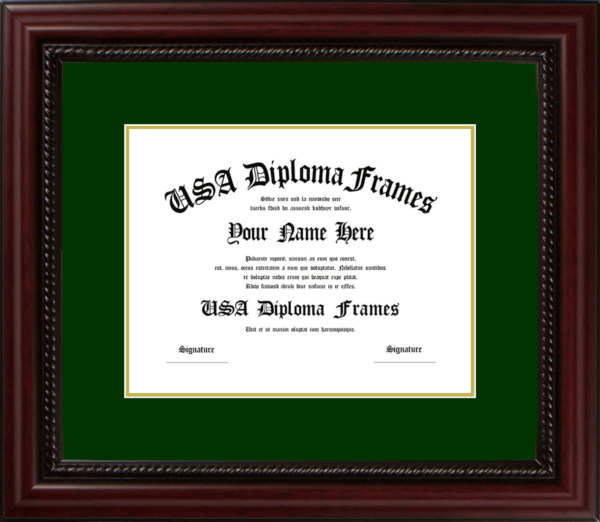 College diploma frames deserve a place on your wall! Custom build your university degree frame today. We offer a variety of college diploma frames ranging from simple to more decorative. Our cherry mahogany frames are a traditional choice sure to last a lifetime. For a more modern look, check out our black matte or white matte frame mouldings. If you really want to make a statement, the cherry rope and executive black mouldings really make a showing. Whatever you choose, We will build your diploma frame with care and customize your diploma frame the way you want it!
