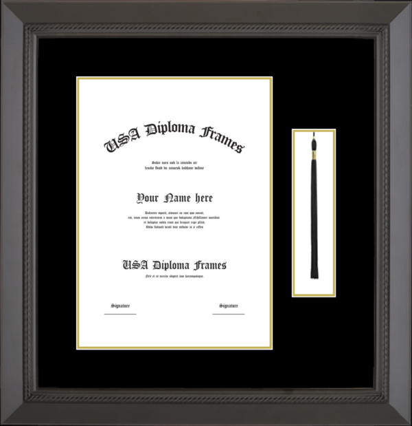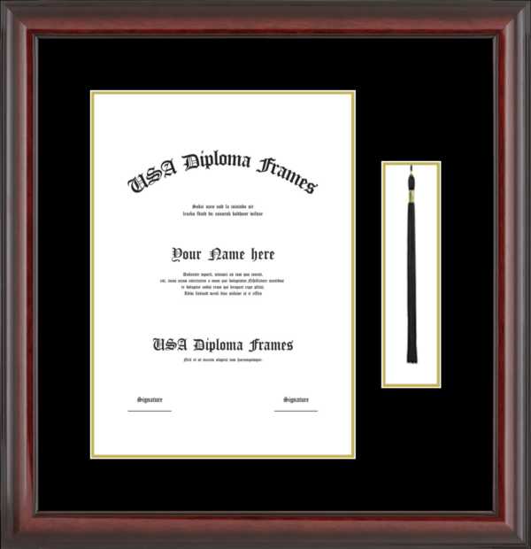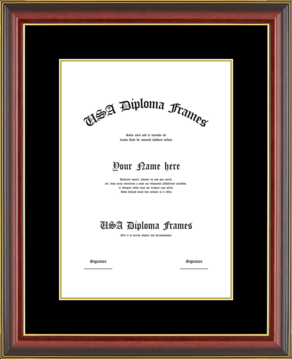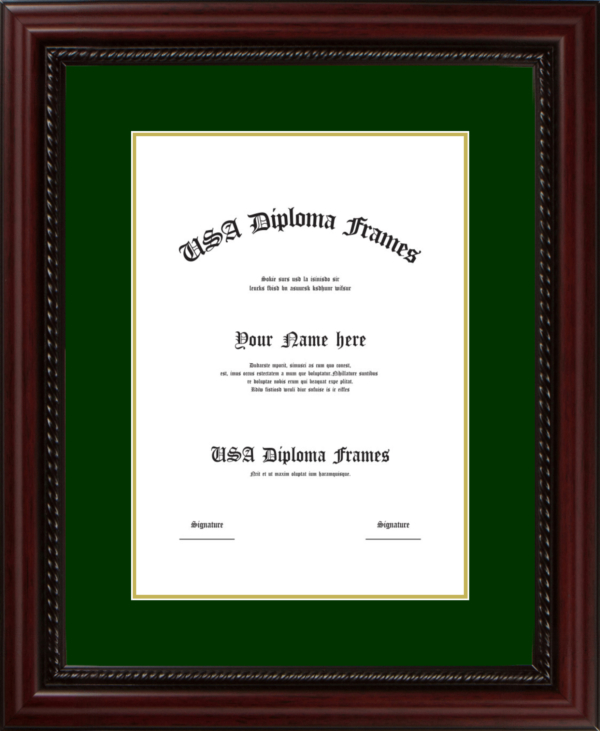 College diploma frames deserve a place on your wall! Custom build your university degree frame today. We offer a variety of college diploma frames ranging from simple to more decorative. Our cherry mahogany frames are a traditional choice sure to last a lifetime. For a more modern look, check out our black matte or white matte frame mouldings. If you really want to make a statement, the cherry rope and executive black mouldings really make a showing. Whatever you choose, We will build your diploma frame with care and customize your diploma frame the way you want it!