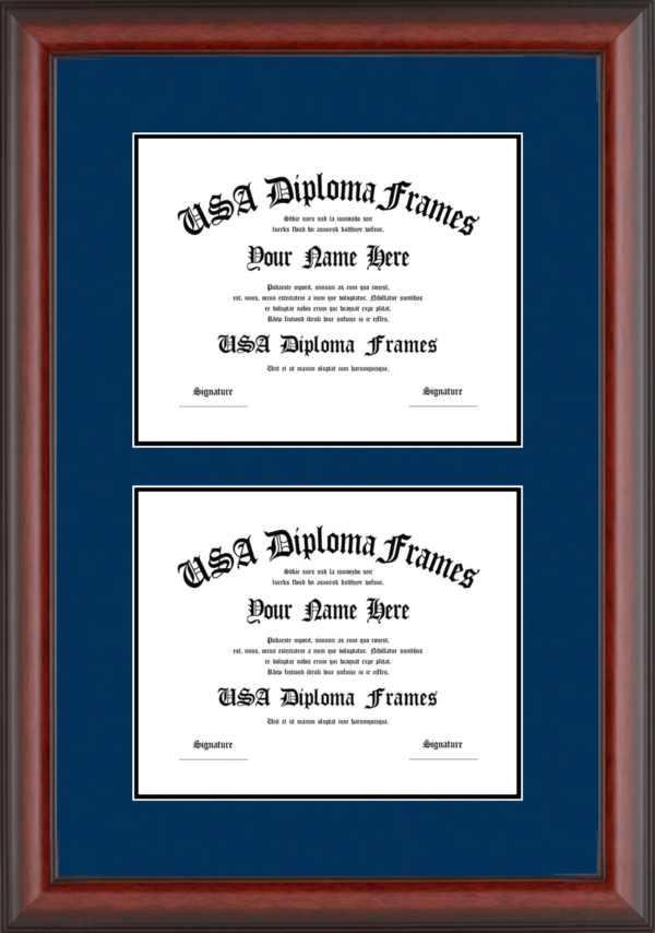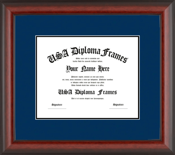 College diploma frames deserve a place on your wall! Custom build your university degree frame today. We offer a variety of college diploma frames ranging from simple to more decorative. Our cherry mahogany frames are a traditional choice sure to last a lifetime. For a more modern look, check out our black matte or white matte frame mouldings. If you really want to make a statement, the cherry rope and executive black mouldings really make a showing. Whatever you choose, We will build your diploma frame with care and customize your diploma frame the way you want it!