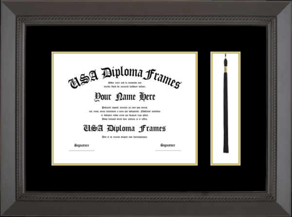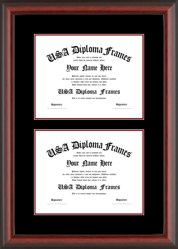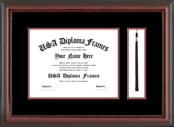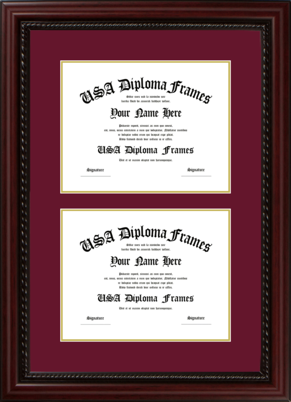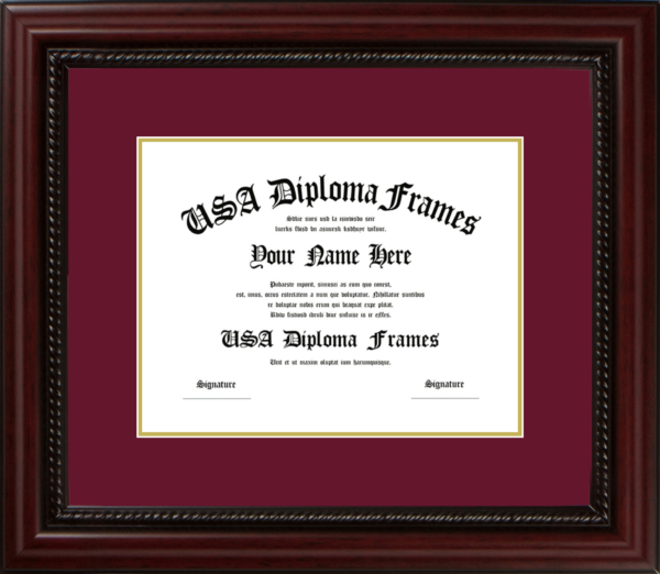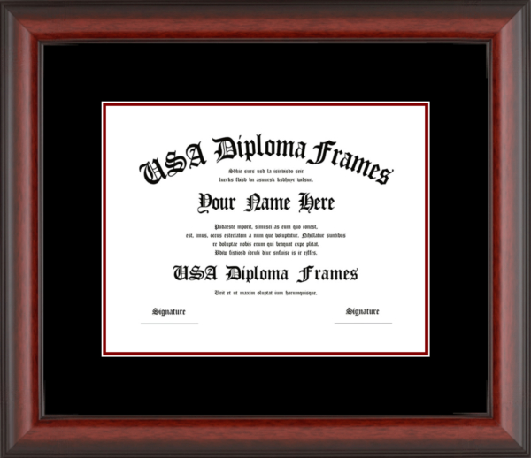 College diploma frames deserve a place on your wall! Custom build your university degree frame today. We offer a variety of college diploma frames ranging from simple to more decorative. Our cherry mahogany frames are a traditional choice sure to last a lifetime. For a more modern look, check out our black matte or white matte frame mouldings. If you really want to make a statement, the cherry rope and executive black mouldings really make a showing. Whatever you choose, We will build your diploma frame with care and customize your diploma frame the way you want it!