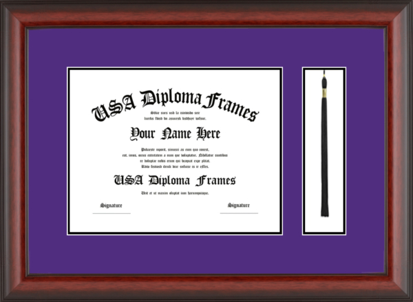 College diploma frames deserve a place on your wall! Custom build your university degree frame today. We offer a variety of college diploma frames ranging from simple to more decorative. Our cherry mahogany frames are a traditional choice sure to last a lifetime. For a more modern look, check out our black matte or white matte frame mouldings. If you really want to make a statement, the cherry rope and executive black mouldings really make a showing. Whatever you choose, We will build your diploma frame with care and customize your diploma frame the way you want it!