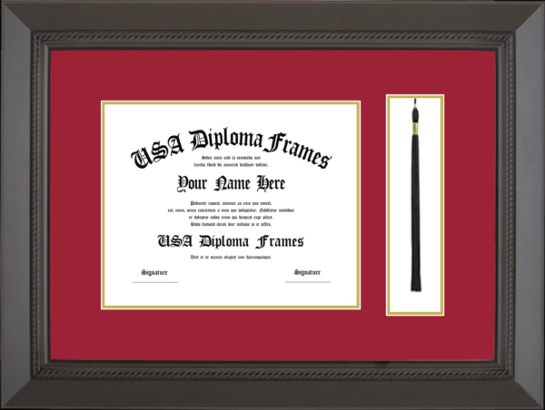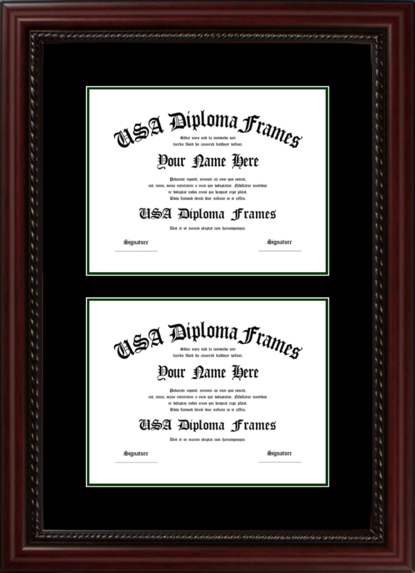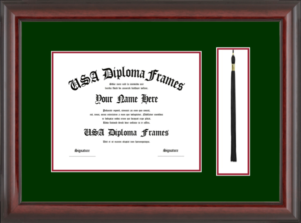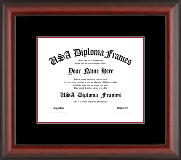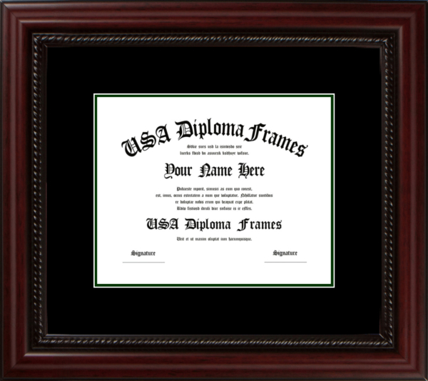 College diploma frames deserve a place on your wall! Custom build your university degree frame today. We offer a variety of college diploma frames ranging from simple to more decorative. Our cherry mahogany frames are a traditional choice sure to last a lifetime. For a more modern look, check out our black matte or white matte frame mouldings. If you really want to make a statement, the cherry rope and executive black mouldings really make a showing. Whatever you choose, We will build your diploma frame with care and customize your diploma frame the way you want it!
