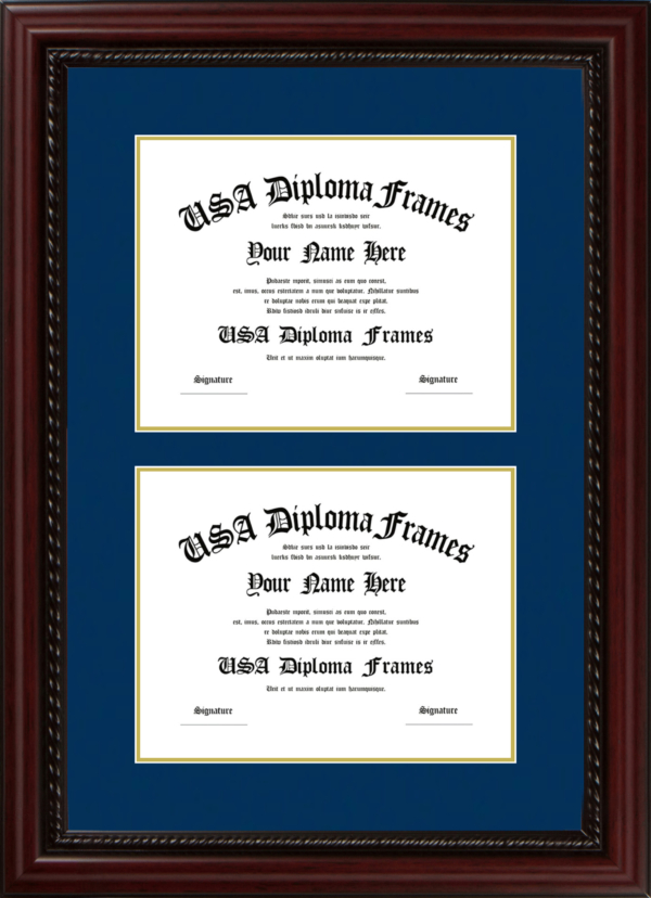 College diploma frames deserve a place on your wall! Custom build your university degree frame today. We offer a variety of college diploma frames ranging from simple to more decorative. Our cherry mahogany frames are a traditional choice sure to last a lifetime. For a more modern look, check out our black matte or white matte frame mouldings. If you really want to make a statement, the cherry rope and executive black mouldings really make a showing. Whatever you choose, We will build your diploma frame with care and customize your diploma frame the way you want it!